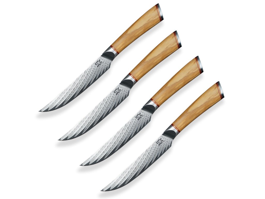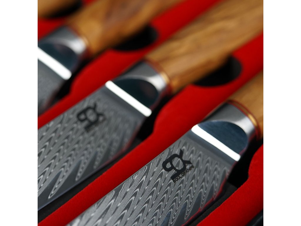 Sada 4 steakových nožů SOK Olive Sunshine Damascus – ostří, co se do masa zamiluje