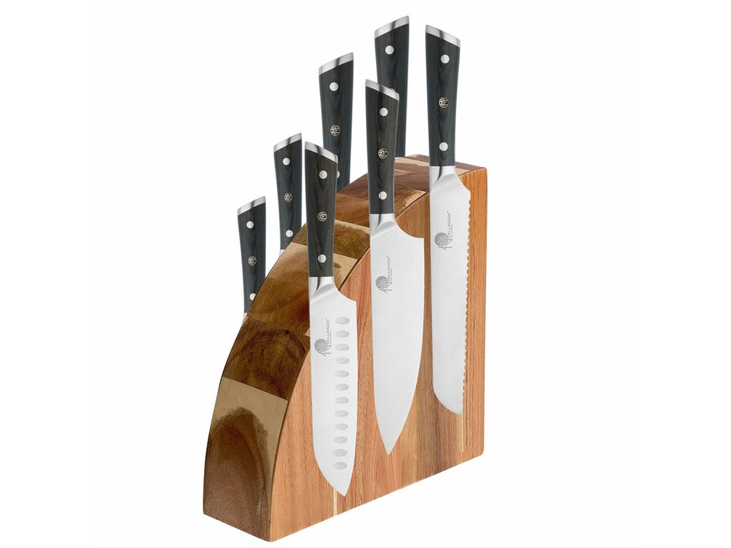 set 7 kuchyňských / kuchařských nožů série Dellinger German Black Samurai s magnetickým stojanem