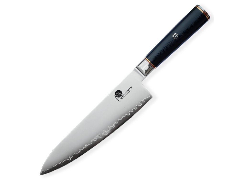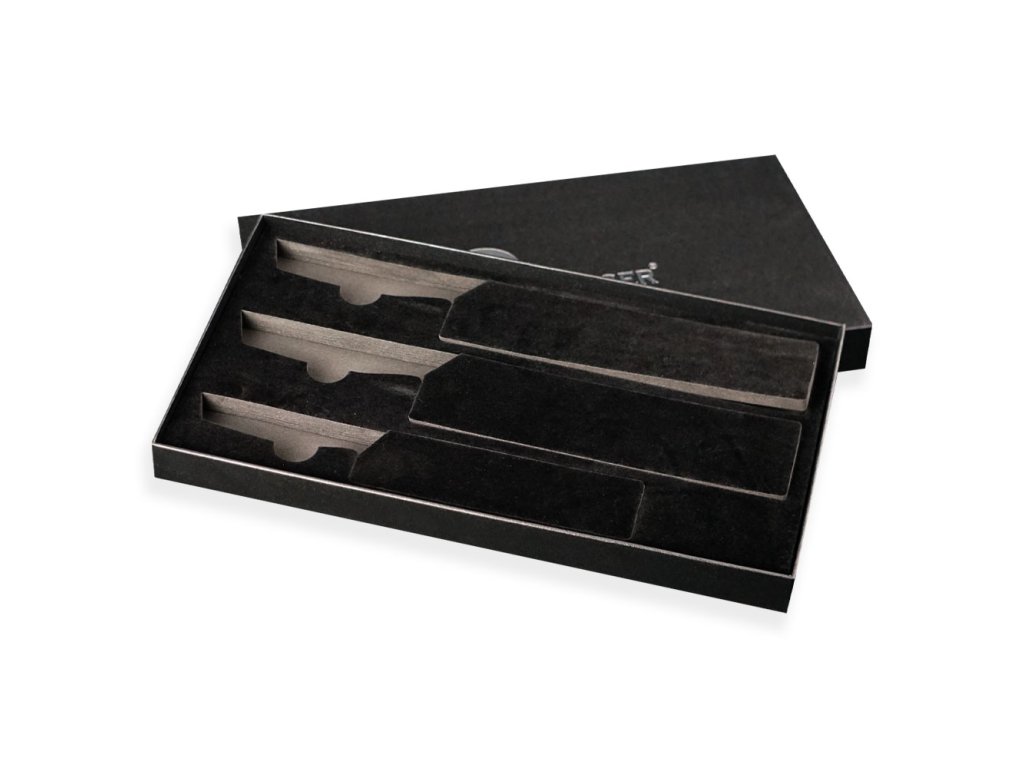 Profesionální sada nožů Dellinger Okami je navržena pro maximální výkon a bezpečnost při každodenní práci s potravinami. Obsahuje tři klíčové nože pro každého kuchaře, nebo řezníka – šéfkuchařský nůž Chef (205 mm), nůž Santoku (180 mm) a okrajovací nůž (90 mm) to vše uložené v dárkové krabičce.