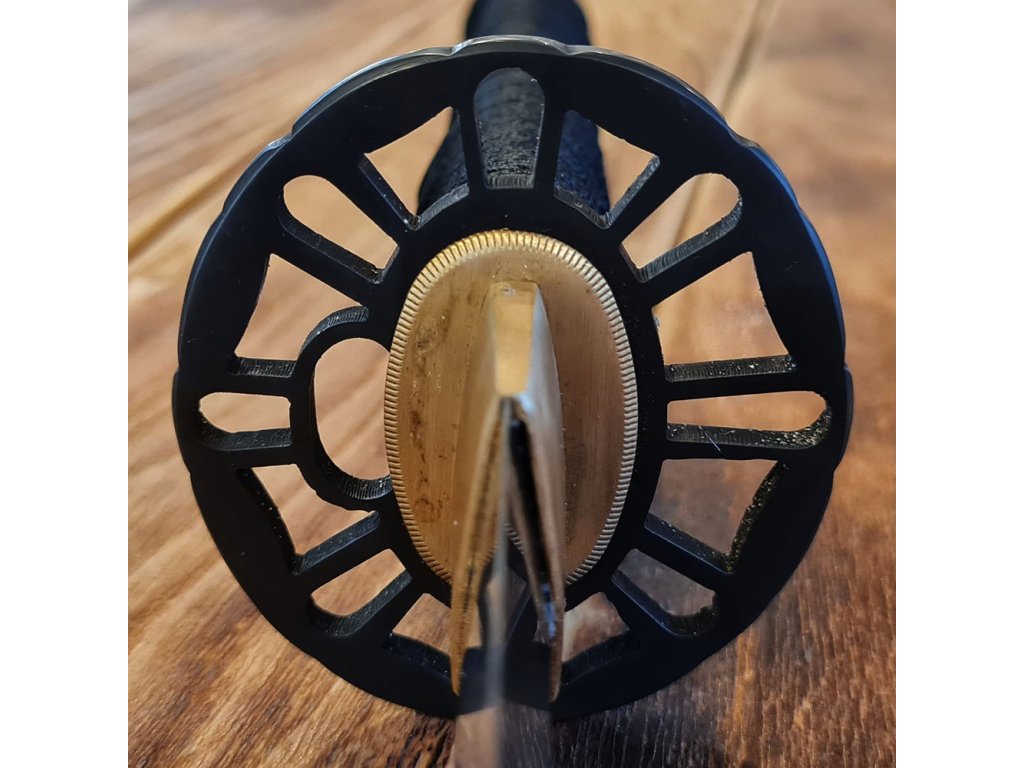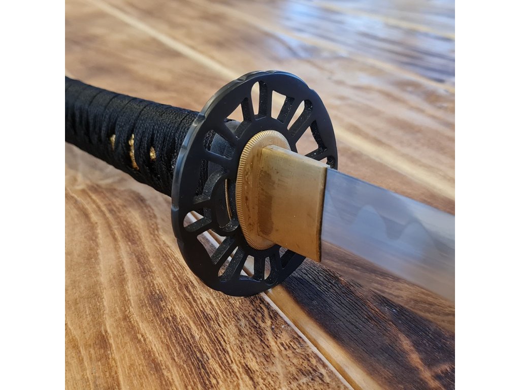 ✅ tsuka: (rukojeť) dřevěné jádro s vloženou pravou kůží z rejnoka (Samegawa) oplet ITO černé barvy. Čepel katany je zajištěna dvěma bambusovými kolíy (mekugi). Čepel od rukojeti můžete odmontovat vytažením těchto kolíků. Na obou stranách Tsuky je menuki (ornament).