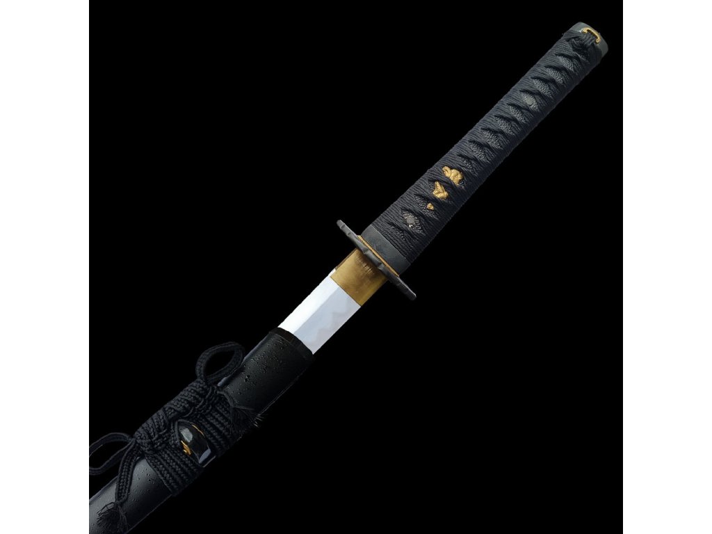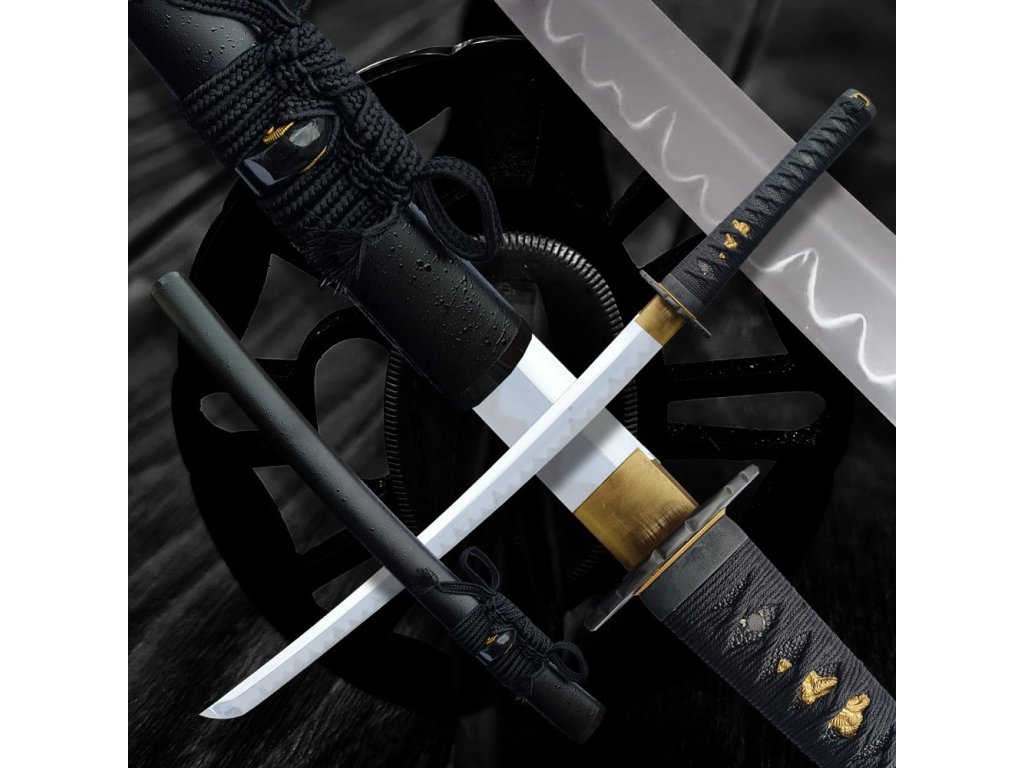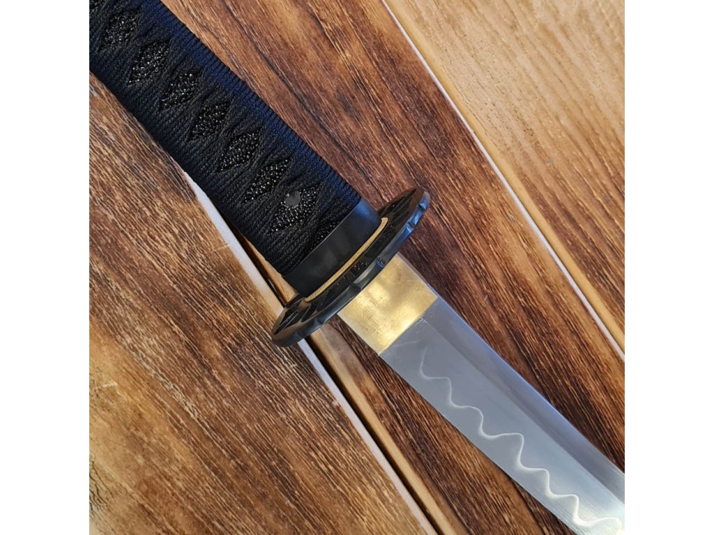 Kovaná čepel z oceli AISI 1095 té nejvyšší kvality. Ocel byla laminována v monokompositnítní konfiguraci Maru - diferenciálně tvrzená. Uhlíková ocel AISI 1095 je velmi pevná a skvěle drží ostrost. Výrazný reálný Choji Hamon je tvořen dle dávných tradičních metod, které vychází z mnohaletých zkušeností kovářského mistra. Po ručním broušení a leštění je povrch čepele jako zrcadlo. Čepel byla ve finální fázi leštěna kamenem hazuya - tím je dosaženo téměř žiletkového ostří (razor sharp). Jedná se o špičkovou repliku samurajského meče, která je vhodná k sekovým zkouškám a lze ji rozložit na jednotlivé části. Tato čepel byla vyzkoušena a testována tak, aby odstranila vše co jí stojí v cestě ! Sori (zakřivení čepele) je speciálně navrženo tak, aby bylo dosaženo co možná nejjemnějších a nejčistších řezů. To vše v kombinaci s výběrem tradičního Koshirae zaručuje, že získáte to nejlepší z hlediska vzhledu i funkčnosti. Uhlíková ocel AISI 1095 má působivou tvrdost ve škále HRC- perfektní kombinace této tvrdosti je podtrženo zakřivením čepele Sori, které umožňuje snadné přeseknutí tatami, slaměné rohože, nebo bambusu pro tameshigiri. Full tang konstrukce této katany výrazně zvyšuje sílu meče. Hrot čepele je tvarovaný shinogi-zukuri a chu kissaki se skutečným Diamond-Shaped Yokote, které je velmi dobře definováno tím, že hamon prochází po celé délce přes Boshi. Tento japonský krátký meč wakizashi je možné kombinovat do setu s katanou SAKUMA (K-451)