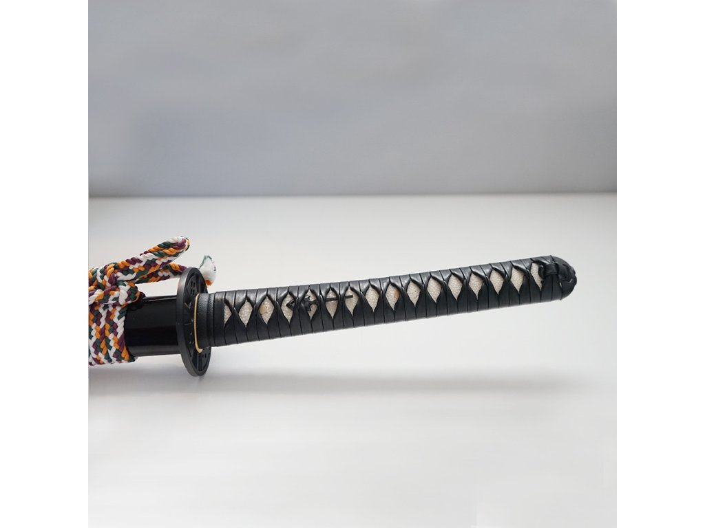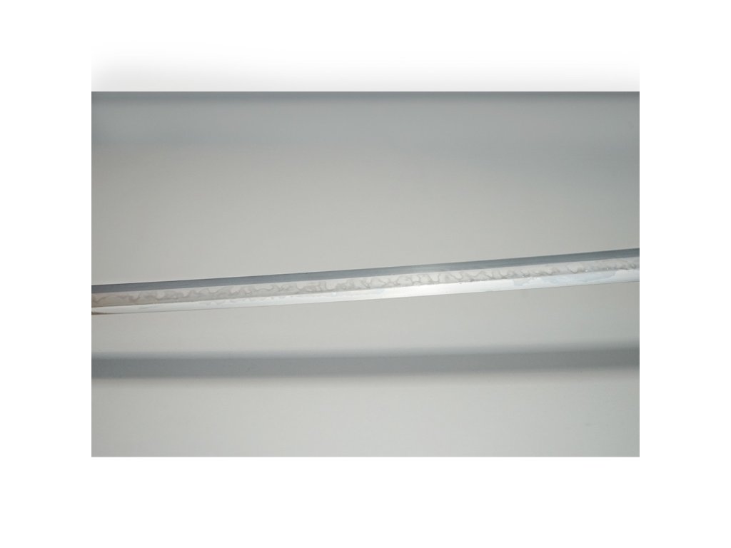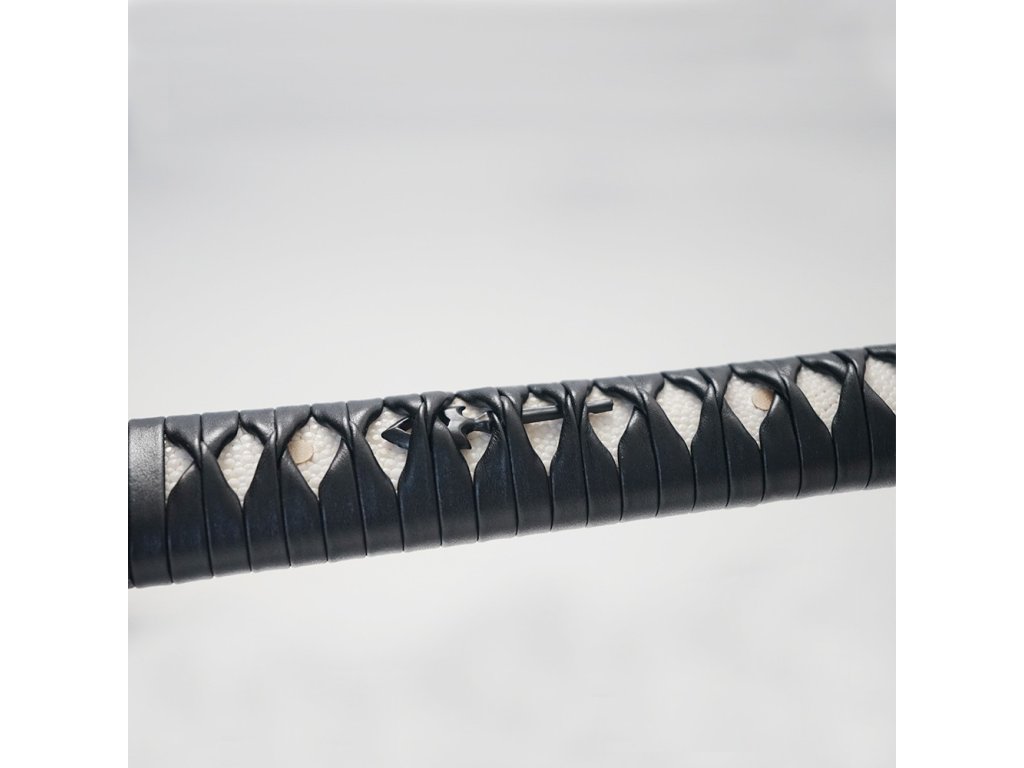 Ručně kovaná čepel z oceli T-10 té nejvyšší kvality. Ocel byla laminována v monokompositní konfiguraci Maru - diferenciálně tvrzená. Uhlíková ocel T-10 (obsah 1,1% uhlíku a 0,4% manganu) je velmi pevná a skvěle drží ostrost. Čepel byla ve finální fázi ručně leštěna kamenem hazuya - tím je dosaženo téměř žiletkového ostří (razor sharp) a zrcadlového lesku. Výrazný reálný Choji hamon je tvořen dle dávných tradičních metod, které vychází z mnohaletých zkušeností kovářského mistra, který výrobou této nádherné zbraně strávil několik dnů. Vše na tomto meči je individuálně zhotoveno, včetně saye a habaki, jsou použity nejkvalitnější komponenty, včetně špičkového laku na sayu, japonského hedvábí a skutečné rejnočí kůže nejvyšší kvality. Jedná se o špičkovou repliku samurajského meče, která je vhodná k sekovým zkouškám a lze ji rozložit na jednotlivé části. Tato čepel byla vyzkoušena a testována tak, aby odstranila vše co jí stojí v cestě ! Sori (zakřivení čepele) je speciálně navrženo tak, aby bylo dosaženo co možná nejjemnějších a nejčistších řezů. To vše v kombinaci s výběrem tradičního kovaného Koshirae zaručuje, že získáte to nejlepší z hlediska vzhledu i funkčnosti. Uhlíková ocel T-10 má působivou tvrdost HRC 58 - perfektní kombinace této tvrdosti je podtrženo zakřivením čepele Sori, které umožňuje snadné přeseknutí tatami, slaměné rohože, nebo bambusu pro tameshigiri. Full tang konstrukce této katany výrazně zvyšuje sílu meče. Čepel je typu shinogi-zukuri, tento typ čepele se vyrábí od 10. století našeho letopočtu. Hrot meče ko kissaki se skutečným Diamond-Shaped Yokote, které je velmi dobře definováno tím, že hamon prochází po celé délce přes Boshi. Yokote je velmi důležité pro strukturální integritu špičky meče. Pomáhá absorbovat otřes, rozptýlí sílu a přispívá k stabilitě a síle meče při tzv. sekořezu.