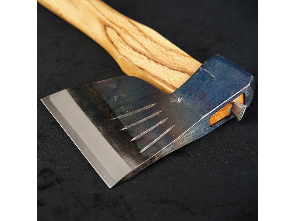 Tato sekera je ideální pro každodenní použití. Sekery Mizuno jsou vyrobeny pro přesné řezací a sekací úkoly a ne pro tupé údery do velkých polen. Používejte tyto sekery s láskou a ony se vám odvděčí nevídanou rychlostí a efektivitou. Laminovaná ocelová hlava sekery se skládá ze tří vrstev oceli (Warikomi). Střed (jádro) hlavy je vyroben z japonské oceli s obsahem 0,45 % uhlíku. Ocel kolem něj je mnohem měkčí, výsledkem čehož je velmi tvrdé jádro obalené měkčí ocelí pro lepší absorpci úderu. Hlava sekery je zdobena japonskými znaky, jejichž design odkazuje na Kumadori z Kabuki, velmi tradiční druh japonského tance. Písmeno pod značkou je starodávná japonská značka nazývaná "Mizuno". Na obou stranách hlavy sekery najdete pruhy, které mají specifický význam – sedm pruhů reprezentuje osm hor, přičemž osmá hora není zmíněna, protože může přinést neštěstí.