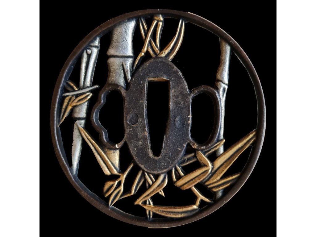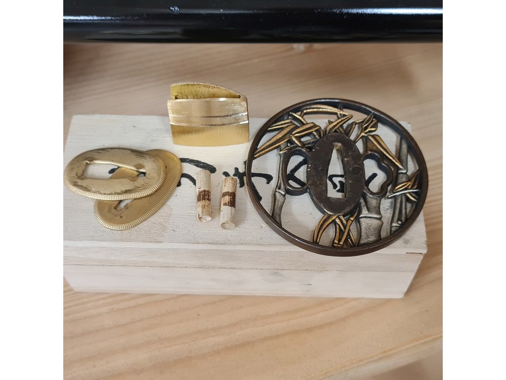 • tsuba: odlévaná s orientálním motivem bambusu