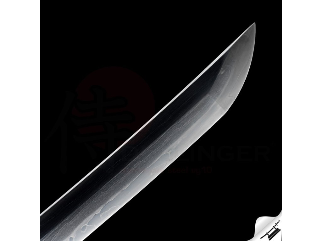 Výrazný reálný SUGUHA hamon je tvořen dle dávných tradičních metod, které vychází z mnohaletých zkušeností kovářského mistra. Po ručním broušení a leštění je povrch čepele jako zrcadlo. Jedná se o špičkovou repliku samurajského meče, která je vhodná k sekovým zkouškám a lze ji rozložit na jednotlivé části. Tato čepel byla vyzkoušena a testována tak, aby odstranila vše co jí stojí v cestě ! Sori (zakřivení čepele) je speciálně navrženo tak, aby bylo dosaženo co možná nejjemnějších a nejčistších řezů. Uhlíková ocel T-10 má působivou tvrdost HRC 58 - perfektní kombinace této tvrdosti je podtrženo zakřivením čepele Sori, které umožňuje snadné přeseknutí tatami, slaměné rohože, nebo bambusu pro tameshigiri. Full tang konstrukce této katany výrazně zvyšuje sílu meče. Hrot čepele je tvarovaný shinogi-zukuri a chu kissaki se skutečným Diamond-Shaped Yokote, které je velmi dobře definováno tím, že hamon prochází po celé délce přes Boshi. Yokote je velmi důležité pro strukturální integritu špičky meče. Pomáhá absorbovat otřes, rozptýlí sílu a přispívá k stabilitě a síle meče při tzv. sekořezu. Tato katana (samurajský meč) je vhodná na použití v praxi, firma Dellinger se však zříká jakékoliv odpovědnosti za zranění a poškození vzniklá při použití. Schraňujte meč mimo dosah dětí ! Jakákoliv manipulace se samurajským mečem je na vaší vlastní odpovědnost. Nezapomeňte, že máte ve svých rukou smrtelnou zbraň !