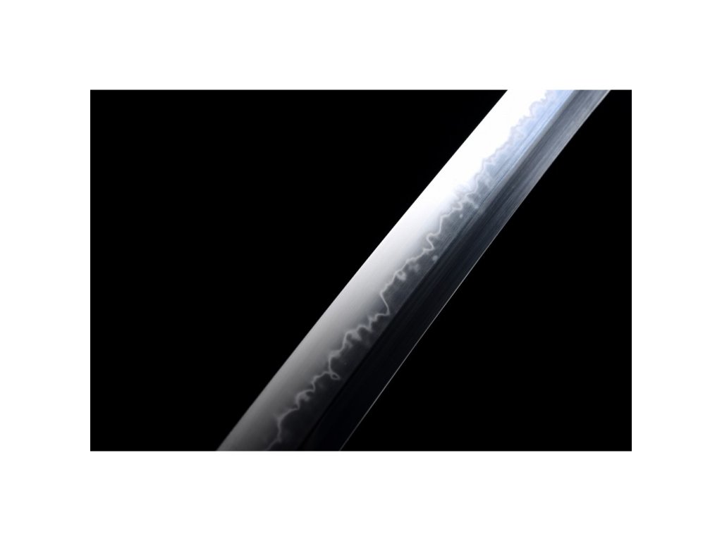Výrazný reálný hamon je tvořen dle dávných tradičních metod, které vychází z mnohaletých zkušeností kovářského mistra. Po ručním broušení a leštění je povrch čepele jako zrcadlo. Jedná se o špičkovou repliku samurajského meče, která je vhodná k sekovým zkouškám a lze ji rozložit na jednotlivé části. Tato čepel byla vyzkoušena a testována tak, aby odstranila vše co jí stojí v cestě ! Sori (zakřivení čepele) je speciálně navrženo tak, aby bylo dosaženo co možná nejjemnějších a nejčistších řezů. Uhlíková ocel T-10 má působivou tvrdost HRC 58 - perfektní kombinace této tvrdosti je podtrženo zakřivením čepele Sori, které umožňuje snadné přeseknutí tatami, slaměné rohože, nebo bambusu pro tameshigiri. Full tang konstrukce této katany výrazně zvyšuje sílu meče. Hrot čepele je tvarovaný shinogi-zukuri a chu kissaki se skutečným Diamond-Shaped Yokote, které je velmi dobře definováno tím, že hamon prochází po celé délce přes Boshi. Yokote je velmi důležité pro strukturální integritu špičky meče. Pomáhá absorbovat otřes, rozptýlí sílu a přispívá k stabilitě a síle meče při tzv. sekořezu. Tato katana (samurajský meč) je vhodná na použití v praxi, firma Dellinger se však zříká jakékoliv odpovědnosti za zranění a poškození vzniklá při použití. Schraňujte meč mimo dosah dětí ! Jakákoliv manipulace se samurajským mečem je na vaší vlastní odpovědnost. Nezapomeňte, že máte ve svých rukou smrtelnou zbraň !