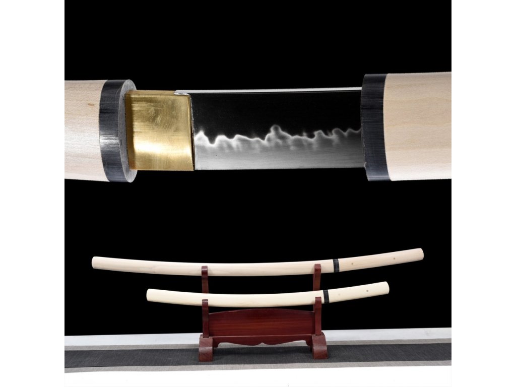 Shirasaya Hirazuki Japanese Wakizashi - T-10 Steel, Real Choji Hamon
