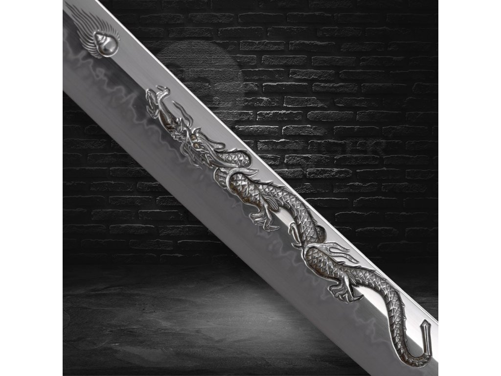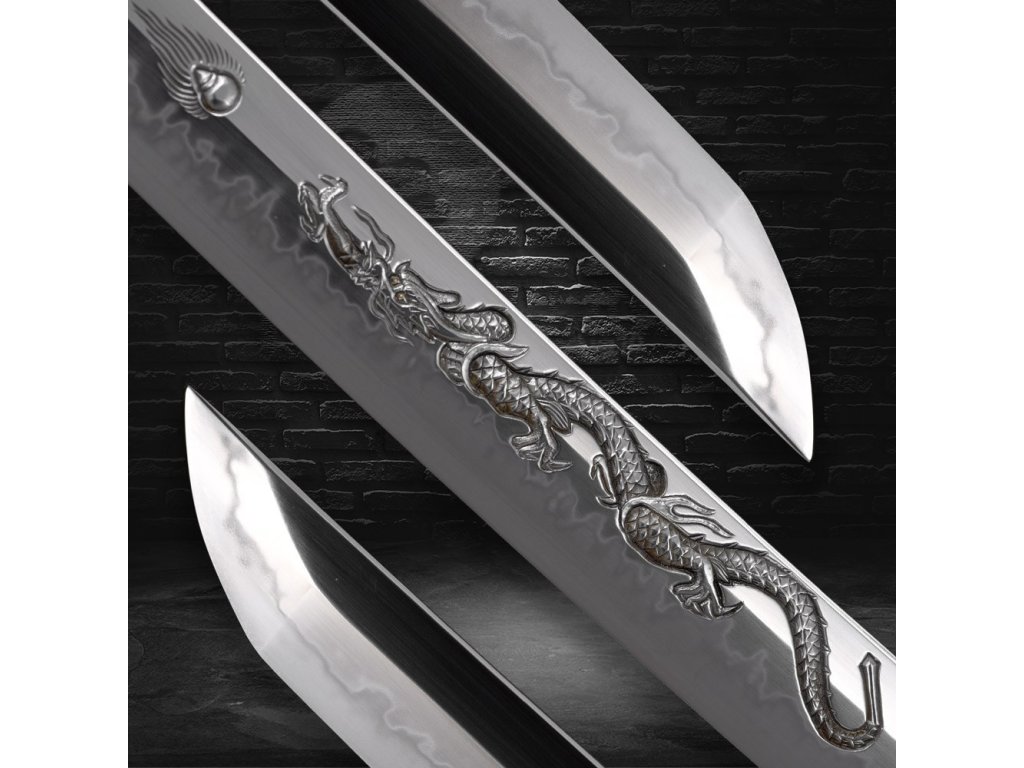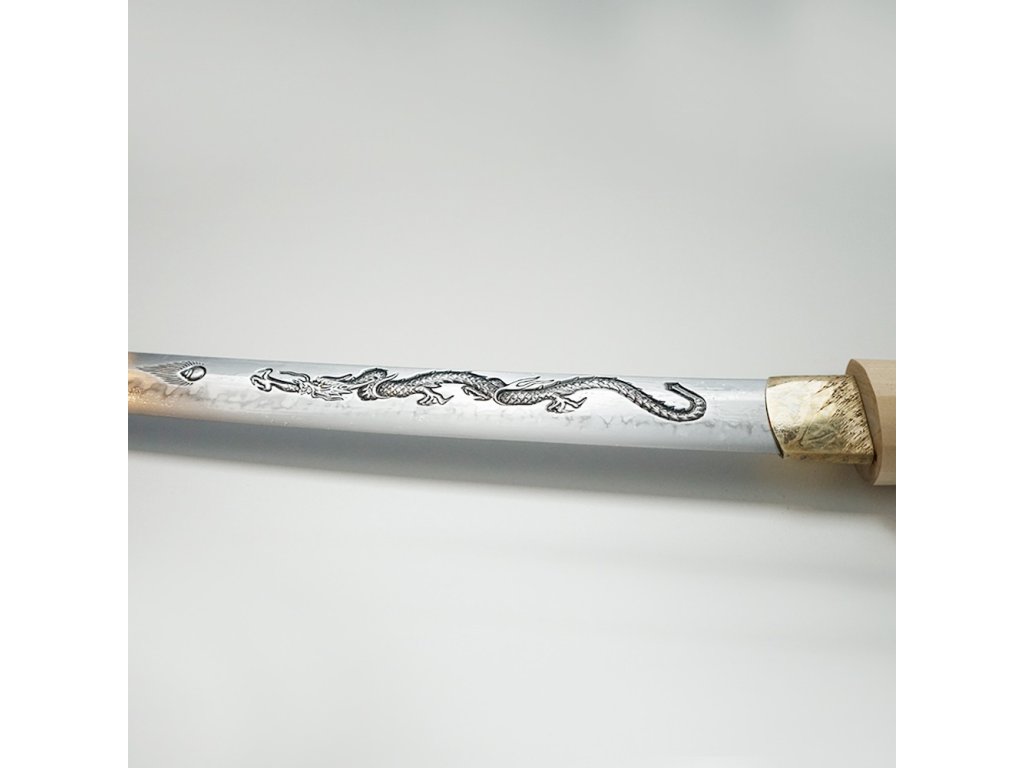 Jedná se o velice zdařilou reprodukci čepele školy Ichimondji, založenou mečířem Norimune, která působila v Bizenu ve 13 až 14. století. Později byl její styl práce s větším či menším úspěchem kopírován dalšími školami, jako například Ishido v provincii Ómi. Charakteristickým rysem této školy je hamon (linie kalení) ve stylu CHOJI, v případě ranné školy Fukuoka Ichimondji ve stylu chúka CHOJI. Kalení se provádělo přirozeně, bez kalící pasty (cuchidori) a kalení v tomto stylu se nazývalo zubu yaki. Dalším prvkem, typickým pro školu Ichimondji byl stín nad linií kalení midare ucuri, svědčící o skvělé senzitivitě materiálu. Čepel je vybavená excelentní rytinou horimono s námětem tříprstého draka ha-agari tatsu s perlou omnipotence hóju.