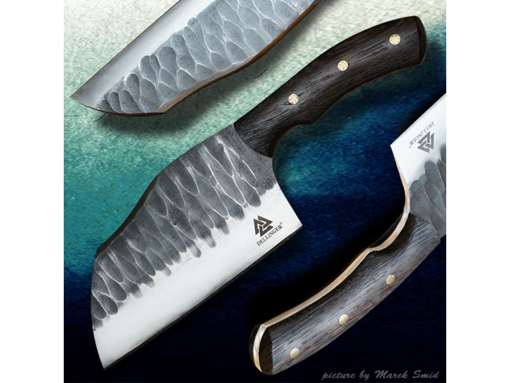 Kdo potřebuje mnoho nástrojů k přípravě jídla ? Vy nyní určitě již ne ! S tímto fantastickým nožem pro outdoor kuchyň zvládnete téměř vše. Sekání, krájení, vykošťování, čištění masa a zeleniny - nic pro tento nůž není problém. Teď můžeme žít společně s naší matkou přírodou. Tento nůž je kovaný a zpracovaný z nástrojové oceli D2. Dosahuje tvrdosti Rockwell 60-62 (HRC). Jeho ostří jen tak někdo, nebo něco nepoškodí. Na rozdíl od nože "Almazan " má nůž Dellinger Gleipnir mnohem silnější (4 mm) a houževnatější ostří, které Vám bude sloužit po mnoho let !