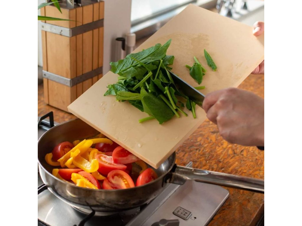 - Materiál: Vyrobené z plastového kompozitu s dřevěným práškem – jemný a příjemný pro tvoje nože.