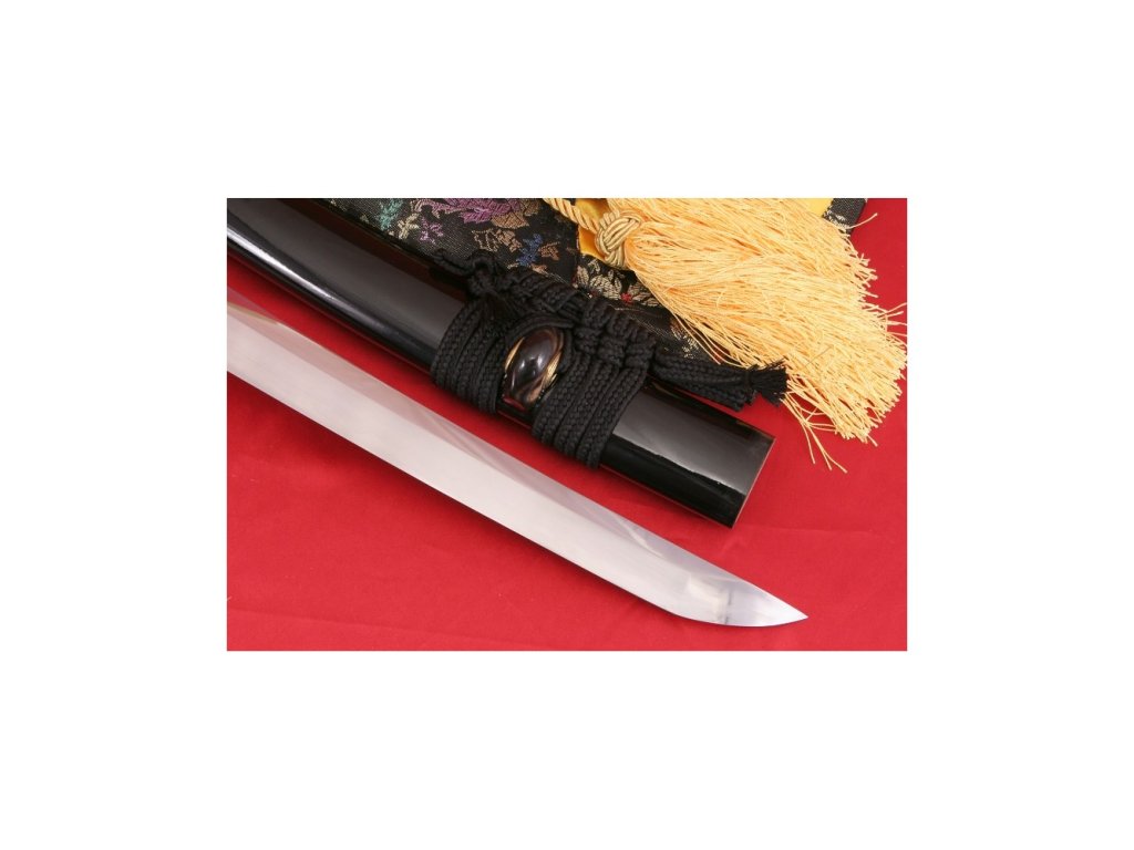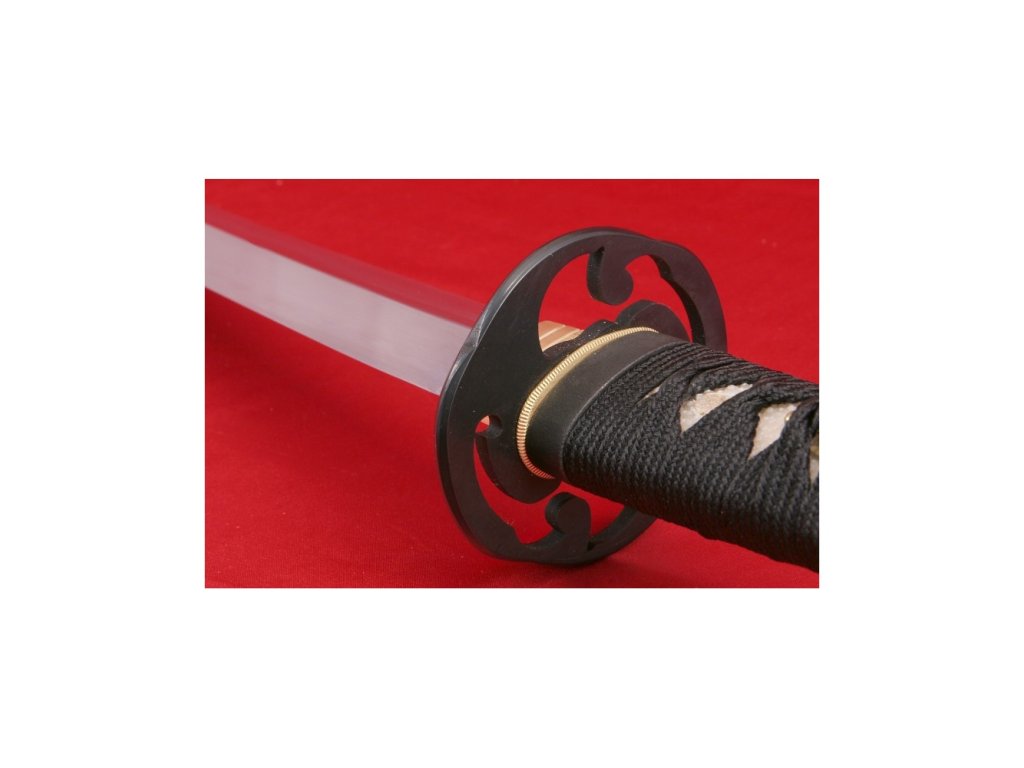 Reálný Choji hamon je tvořen dle dávných tradičních metod, které vychází z mnohaletých zkušeností kovářských mistrů. Tento proces vytváří na čepeli překrásný hamon Hada a Martensite (zrna). Jedná se o špičkovou repliku samurajského meče, která je vhodná k sekovým zkouškám a lze ji rozložit. Tato čepel byla vyzkoušena a testována tak, aby odstranila vše co jí stojí v cestě ! Sori (zakřivení čepele) umožňuje provádění sekání tak, aby bylo dosaženo co možná nejjemnějších a nejčistších řezů. To vše v kombinaci s výběrem tradičního Koshirae zaručuje, že získáte to nejlepší z hlediska vzhledu i funkčnosti. Monokompositnítní uhlíková ocel AISI 1095 má působivou tvrdost ve škále HRC- perfektní kombinace této tvrdosti je podtrženo zakřivením čepele Sori, které umožňuje snadné přeseknutí tatami, slaměné rohože, nebo bambusu pro tameshigiri. Full tang konstrukce této katany výrazně zvyšuje sílu meče. Hrot čepele je tvarovaný shinogi-zukuri a shubo zukuri kissaki (špičatý hrot), který je velmi dobře definován tím, že hamon prochází po celé délce přes Boshi.