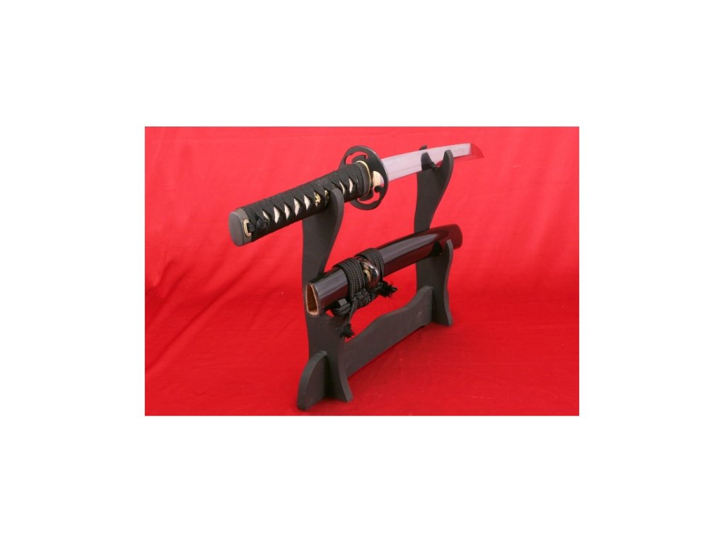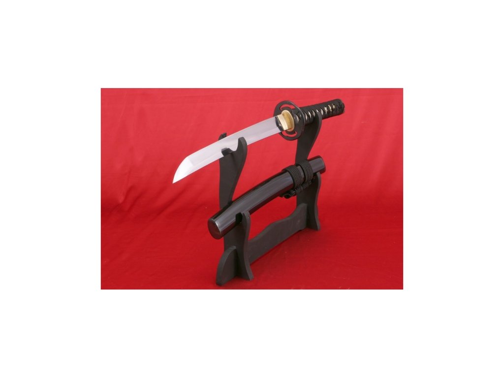 Ručně kované Tanto ENOKI BLACK z oceli 1095 a reálným hamonem od firmy Kawashima. Tsuka potažena pravou rejnočí kůží, ostří zakaleno tradiční jílovou metodou na hamon. Tanto je dodáváno ve zdobeném plátěném vaku v dřevěném dárkovém boxu jehož součástí je jednoduchý, matný, černý stojánek s jedním žlábkem a leštící souprava.