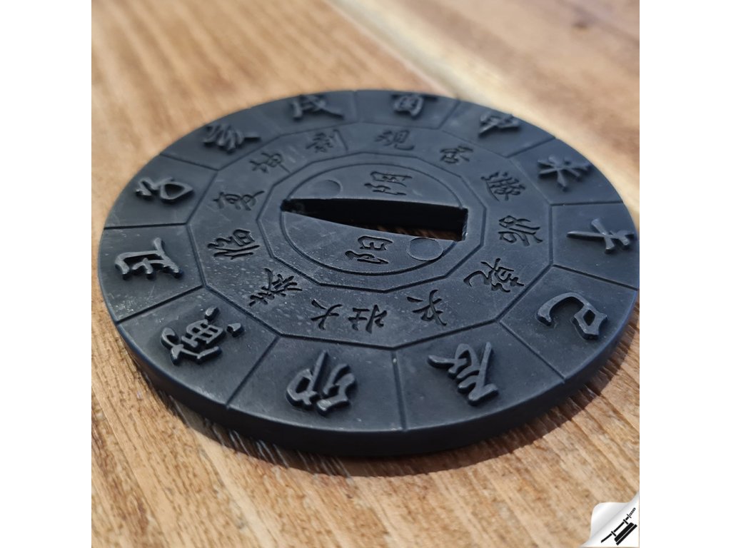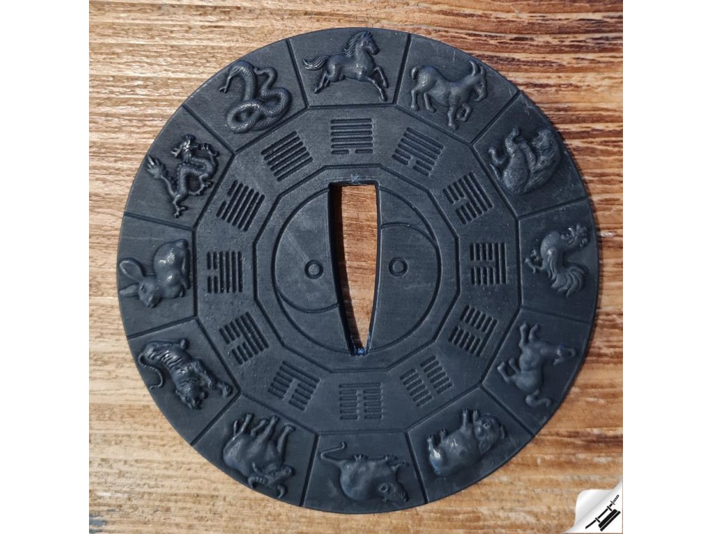 ✅ tsuba (záštita): ocelová zdobená - váha 142 g, průměr 78 mm, otvor 28x8 mm