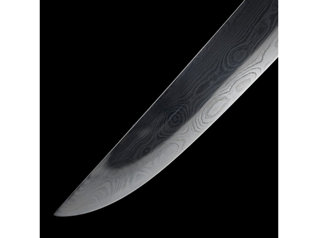Tato čepel je vyrobena ze skládané oceli 1075. Čepel byla přeložena 11krát, aby vytvořila 2048 vrstev, které zvýší pružnost a tvrdost čepele. Viditelné zvlněné zrno na čepeli je výsledkem opakovaného skládání během kování. Výroba této čepeli prochází 14 procesy až po ruční broušení- povrch čepele jako zrcadlo. Čepel byla ve finální fázi ručně leštěna kamenem hazuya - tím je dosaženo téměř žiletkového ostří (razor sharp).
