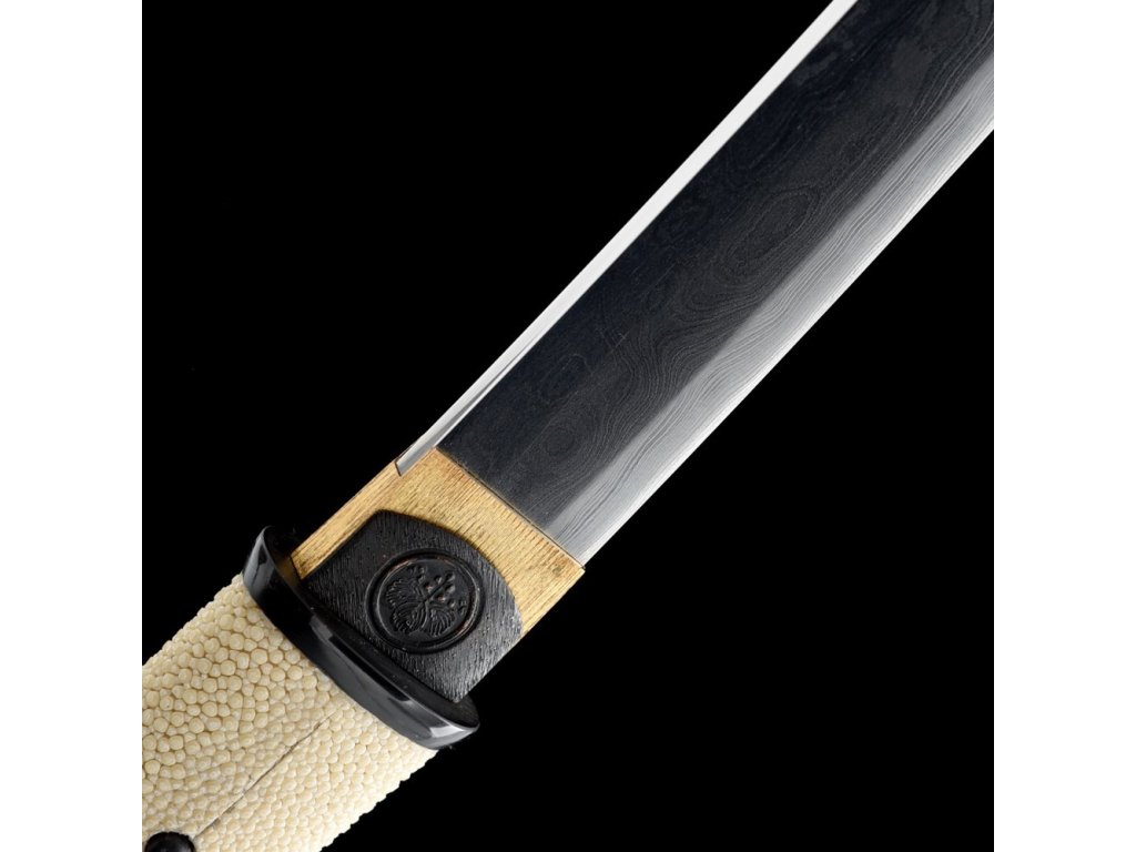 wakizashi KIZEMA z překládané (damascus) oceli AISI 1075