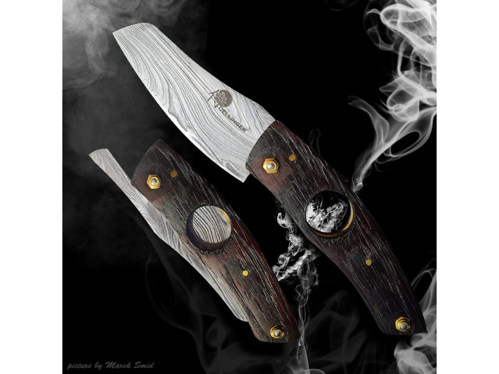 zavírací damaškový nůž s ořezávačem doutníků Dellinger Cigar Cutter II