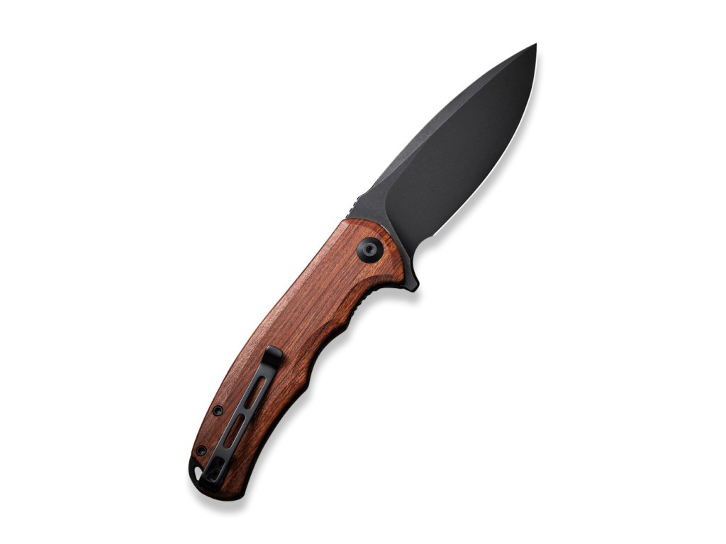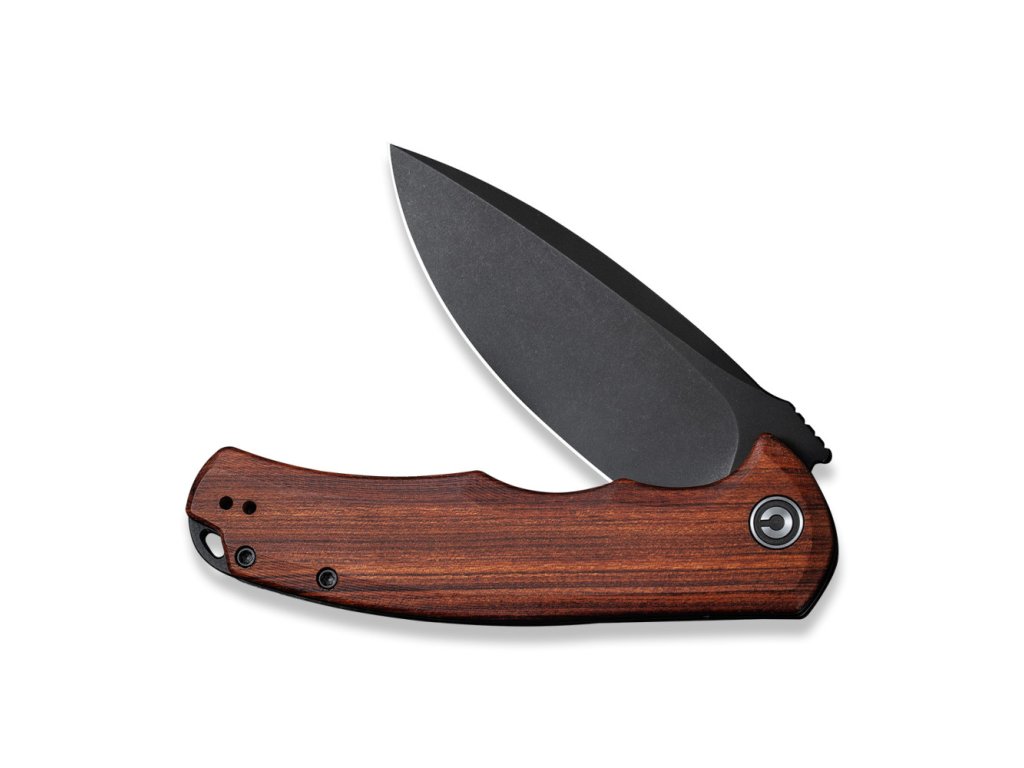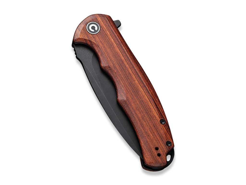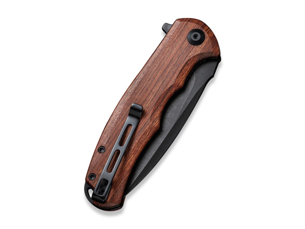 Rukojeť je z exotického dřeva Cuibourtia Wood neboli bubinga, na celonerezových příložkách s oboustranným hlubokým kapesním klipem tip-up. Je ergonomický, rychlý a funkční - navržený tak, aby oslovil masy, a to se podle nás CIVIVI rozhodně povedlo.