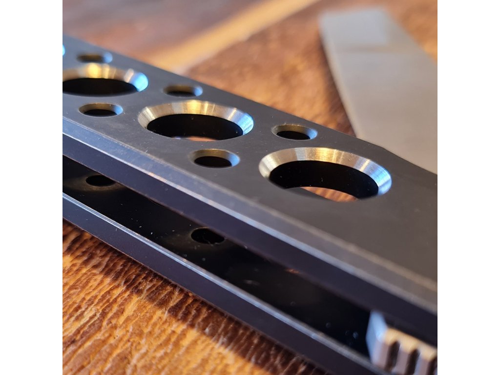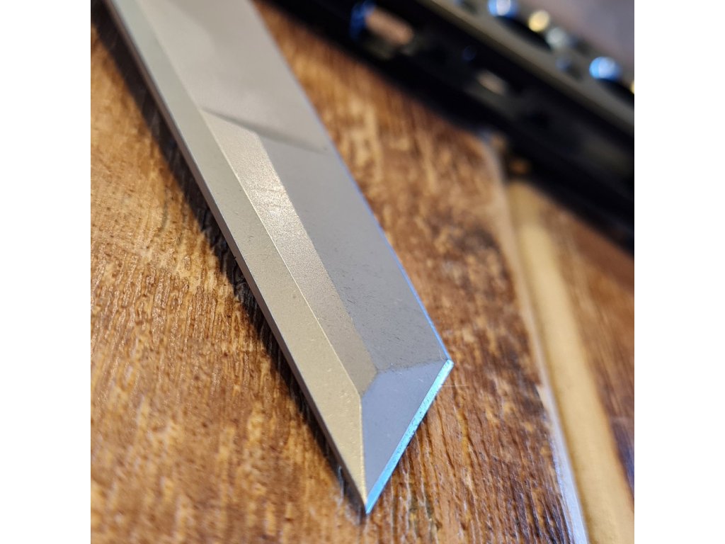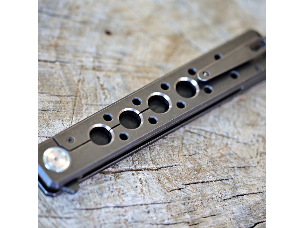 Popis: Nůž Tanto Dellinger Kuzan Silver - Black Titanium Flipper je určen pro vášnivé outdoorové nadšence, kteří vyžadují výkonnostní a odolný skládací nástroj. Jeho konstrukce kombinuje titanové tělo s prvotřídní čepelí z práškové oceli CPM 20CV se stonewashed povrchem, což zajišťuje vysokou odolnost a dlouhou životnost. Design tohoto modelu klade důraz na ergonomii, přesnost a elegantní vzhled.