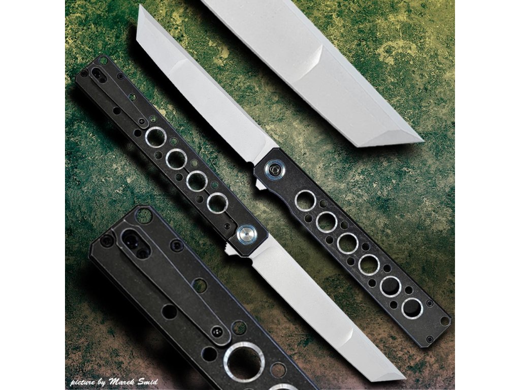 Zavírací nůž Tanto Dellinger Kuzan Silver - Black Titanium Flipper, CPM 20CV Stonewashed