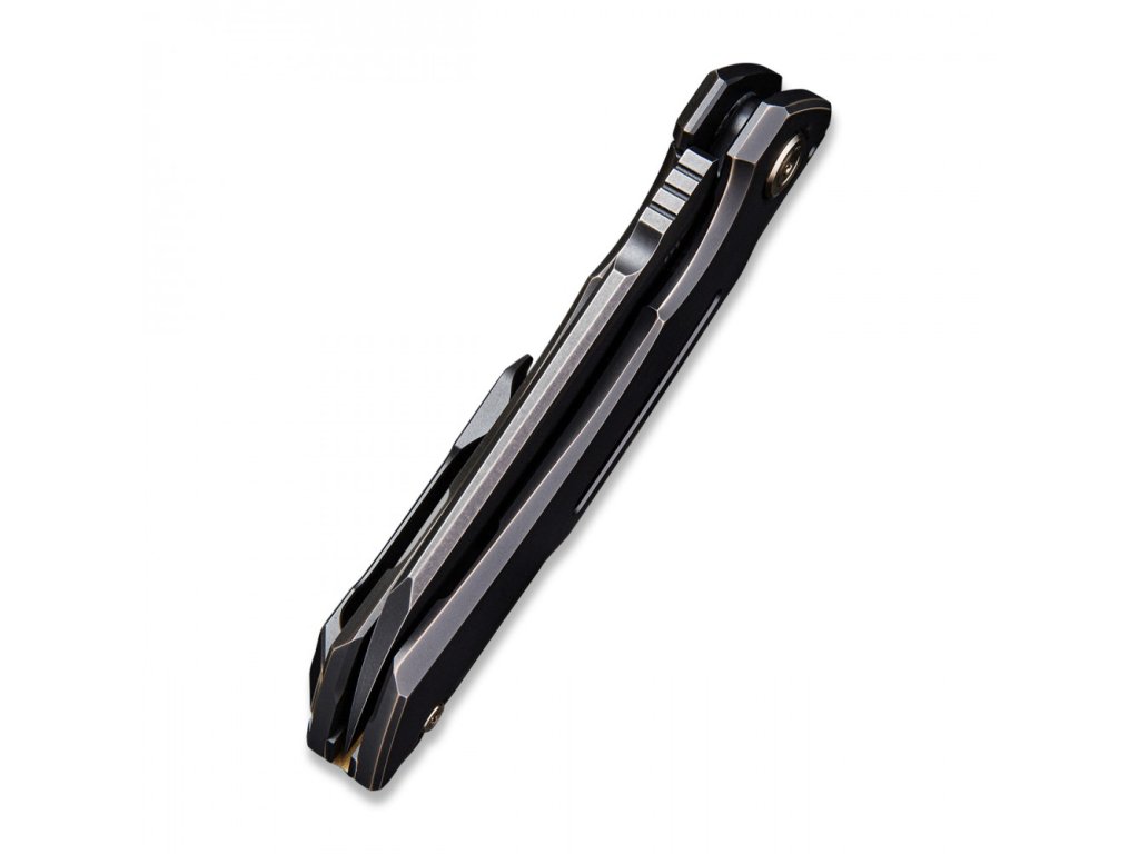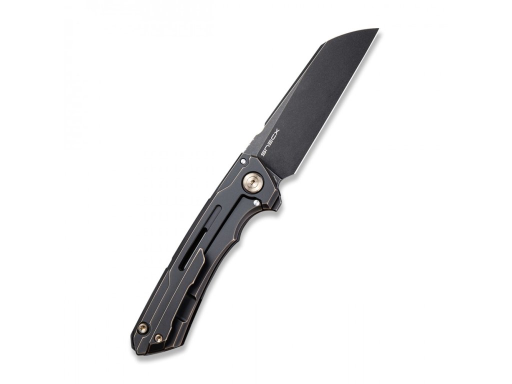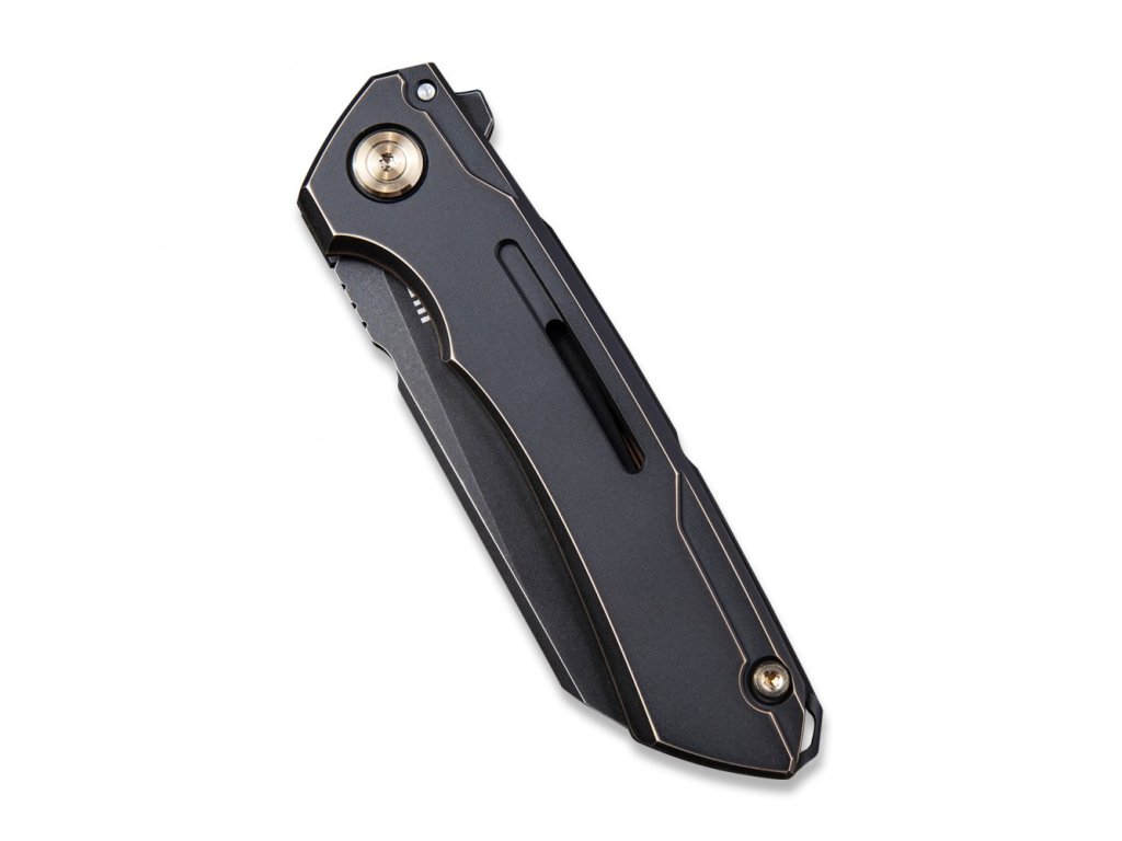 nůž WEKNIFE Mini Buster - Black je vynikající zavírací EDC nůž přizpůsoben i na těžší práci. Čepel o délce 8,71 cm z exkluzivní nerezové oceli CPM 20CV dosahuje vysokou tvrdost okolo 60 HRC. Vysoká houževnatost a odolnost vůči opotřebení je samozřejmostí. Čepel typu „Sheepsfoot“ má povrchovou úpravu Polished Bead Blast. Střenka rukojeti je z materiálu 6AL4V Titanium. Jednoduché a rychlé otevírání nože pomocí flippru (ploutve).