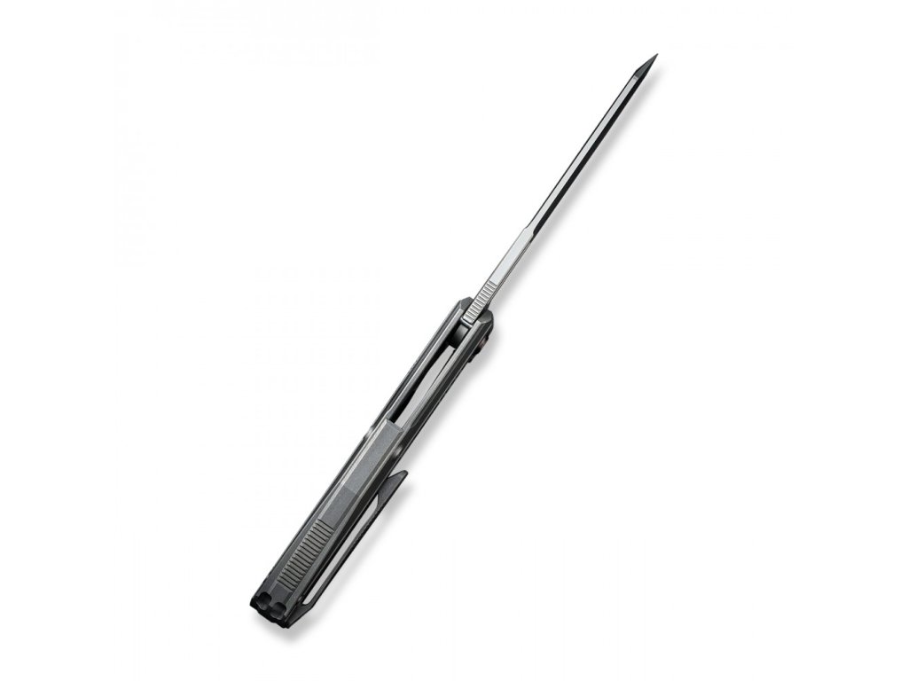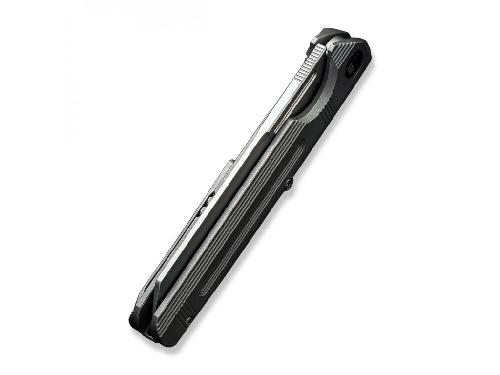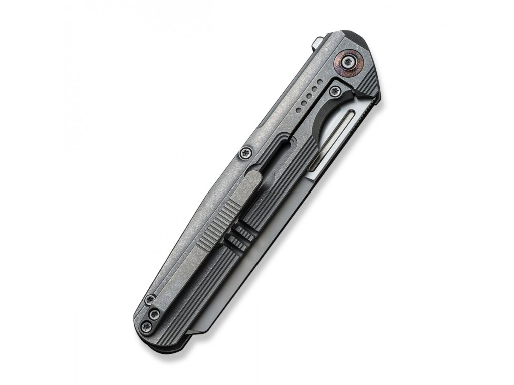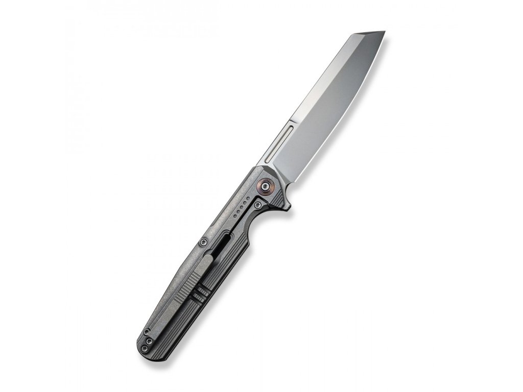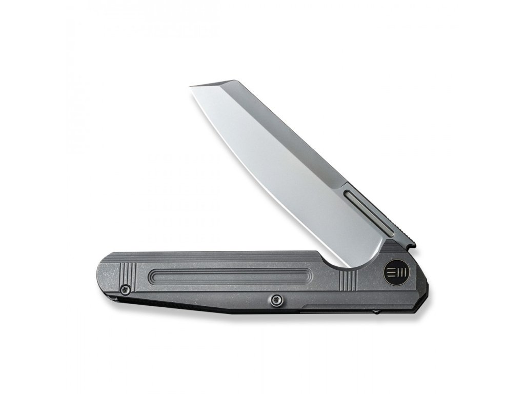 Nůž WEKNIFE Reiver je fantastický nůž s neuvěřitelnou hodnotou. Jedná se o limitovanou edici 260 kusů. Reiver je flipper s futuristickým nádechem. Frézované linie na titanové rukojeti tento estetický dojem ještě umocňují. Čepel ve tvaru sekáčku je vyrobena z nerezové oceli CPM-S35VN s povrchovou úpravou silver bead blasted (pískování stříbrnými korálky), která má velkou houževnatost. Oceníte i extrémně hladké a rychlé otevírání čepele uložené v keramických ložiscích. Jedná se o vynikající taktický design, který lze snadno a efektivně nasadit do role EDC.